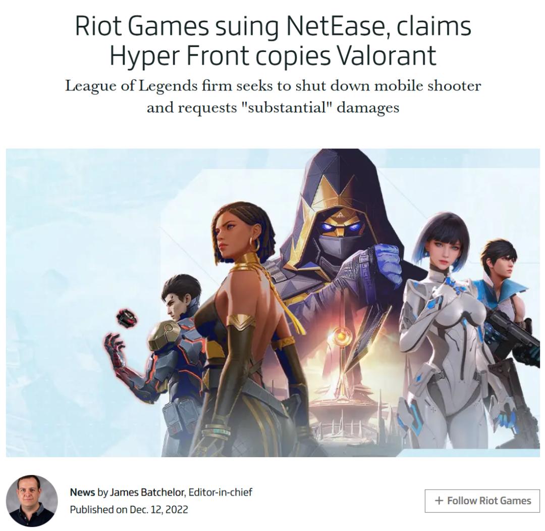 拳頭遊戲起訴網易遊戲,稱《Hyper Front》抄襲《無畏契約》。圖源GamesIndustry.biz。