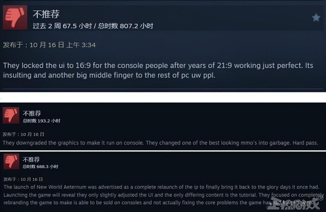 有玩家就吐槽,遊戲分辨率鎖定19:9,這完全就是在鄙視所有PC玩家。還有玩家評論,爲了照顧主機玩家,遊戲降低了畫質,讓畫面最精美的網遊變成了垃圾。還有玩家表示,宣傳說是徹底重造,重新出發,結果只是調整了UI,改動了一下教程,精力都花在匹配遊戲主機上了,根本沒有去決解遊戲存在多年的問題。
