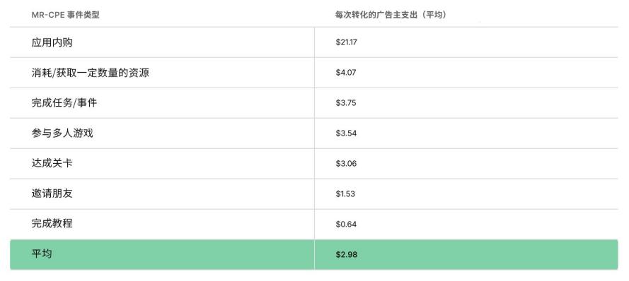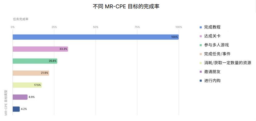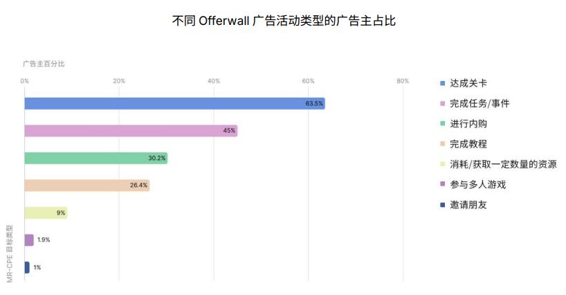 在投放 MR-CPE 活動的廣告主中,63.5% 選擇了「達成關卡」,45% 選擇了「完成任務」,30.2% 選擇了「應用內購買」,26.4% 選擇了涉及「應用參與」或「完成教程」的步驟。