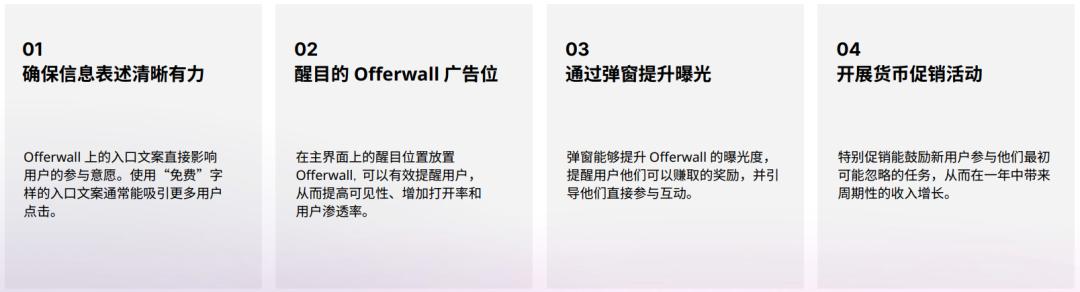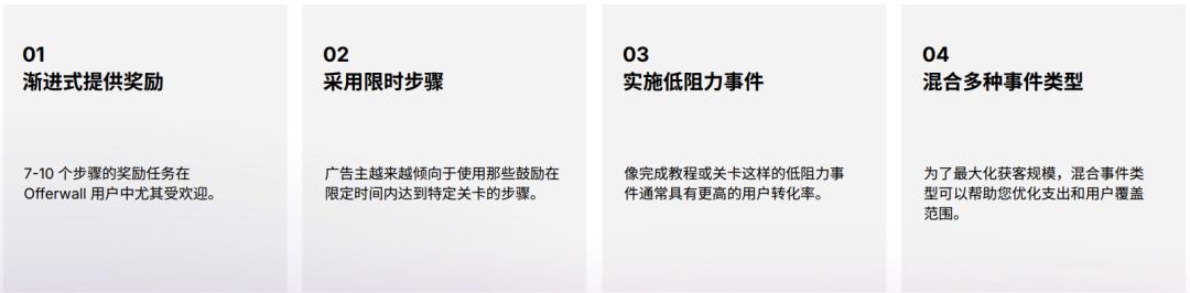 綜合以上數據,Unity對於積分牆廣告獲客也給出了優化建議。