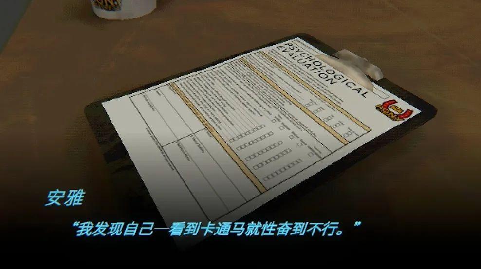 遊戲前期,大副的心理測評上說,他甚至會對公司吉祥物產生慾望——當時這很像一句玩笑話,可其實遊戲一直在暗示大副有問題。