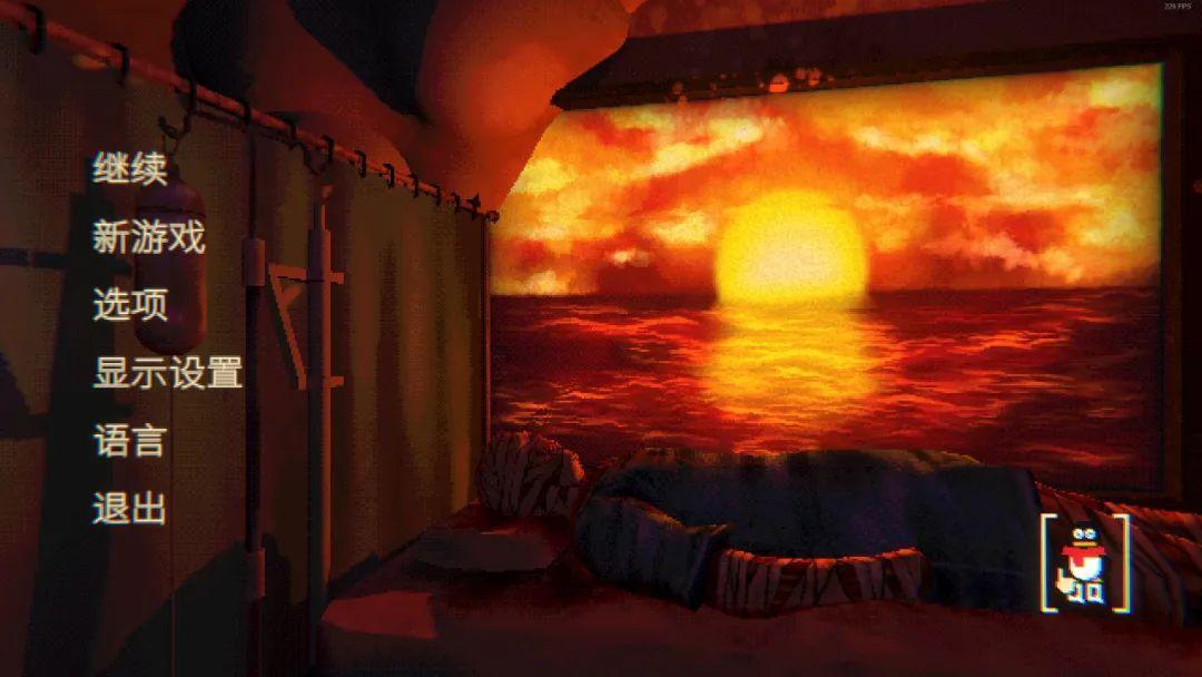 哪怕菜單的設計,也有個驚豔的轉場。遊戲的菜單,是繃帶人躺在窗邊,望着遠處一輪融化中的夕陽,火焰般的海面在他身邊靜靜地起伏。這遙遠的火,沒有溫度的燃燒,都讓人感到一種難以言說的悲傷和寧靜。