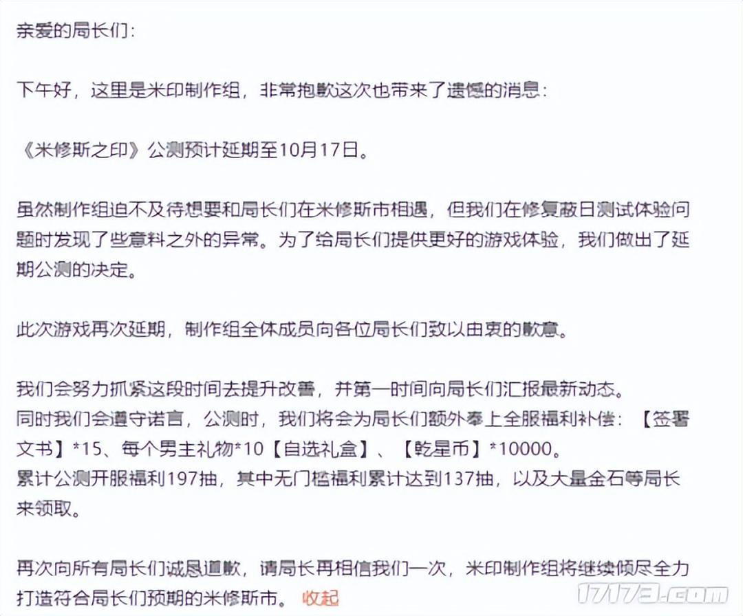 不過《米修斯之印》的上線過程並不順利,最早遊戲定於9月6日上線,隨後因爲因爲遊戲出現問題推遲到9月13日,如今則再次推遲到了10月17日。