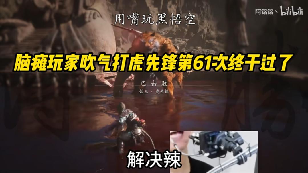 在驚歎“牛逼”之餘,這也讓我聯想起,全盲UP主諾子喵嗚,靠聽聲辨位+彈幕指揮,打過《黑神話:悟空》第一個BOSS的情景;還有腦癱UP主阿銘銘丶,用嘴吹着氣打過虎先鋒……