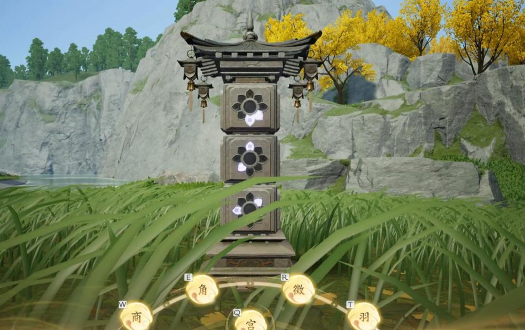 做任務、跑圖的路上,你還會遇到各種遍佈於大世界中的小遊戲。這些小遊戲和NPC任務同樣失衡:麻煩者如音律遊戲,要先用輕功收集風鈴,才能開啓石柱解謎;簡單者如跟着小貓跑一段路,跑完得到一份獎勵。