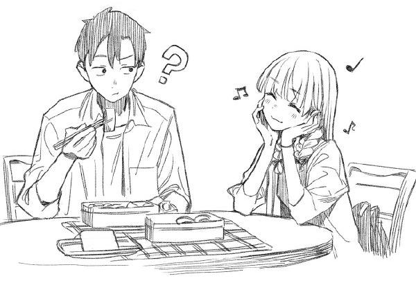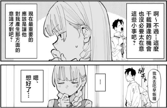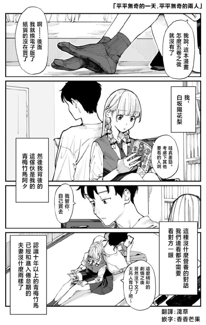 只有像是“青梅竹馬”這樣的特殊關係,才能不需要任何解釋,製造出這種背靠背看漫畫,親密,卻又不違和的情境。青梅竹馬日常淡然,與女主角的扭捏行動,形成的微小反差,是作品的主旋。