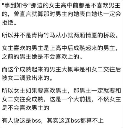 爲什麼又說這段精彩,因爲這些跳脫將一切不合理聯繫了起來。男主因爲落榜纔沒能考入女主的學校,女主突然在高中在意起了男主,因爲女二在與男主交往的過程中,影響了他。