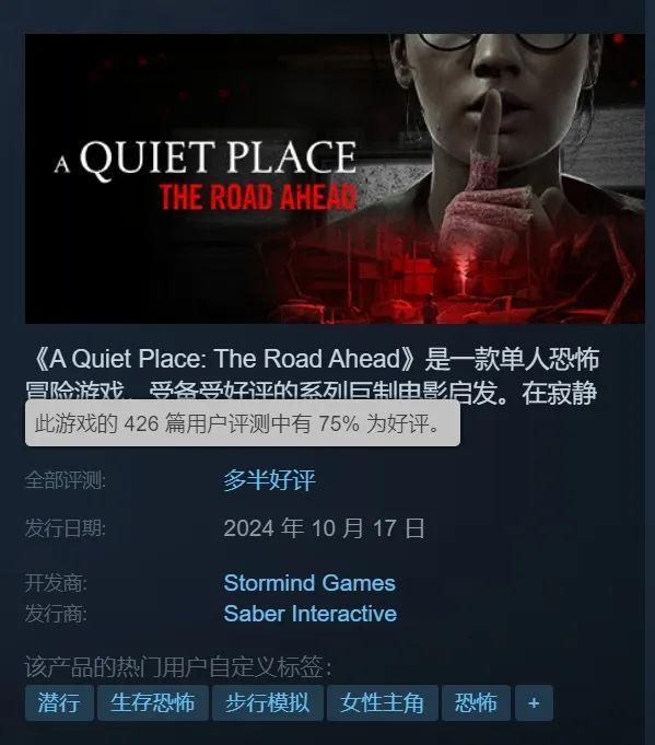 當然,實際上《前方之路》也沒那麼不堪,目前它在Steam上有75%的好評率,說明還是有相當一部分玩家喜歡其給出的體驗。畢竟遊戲確實還原了《寂靜之地》電影的部分感受,所以假如你就是爲了體驗那種步步爲營,心驚膽戰的潛行感的話,那《前方之路》絕不是一個糟糕的遊戲。