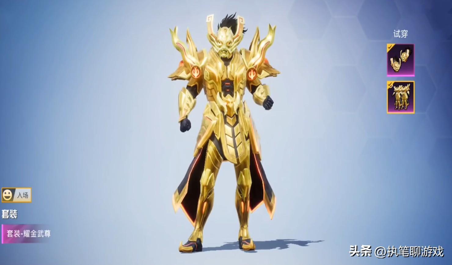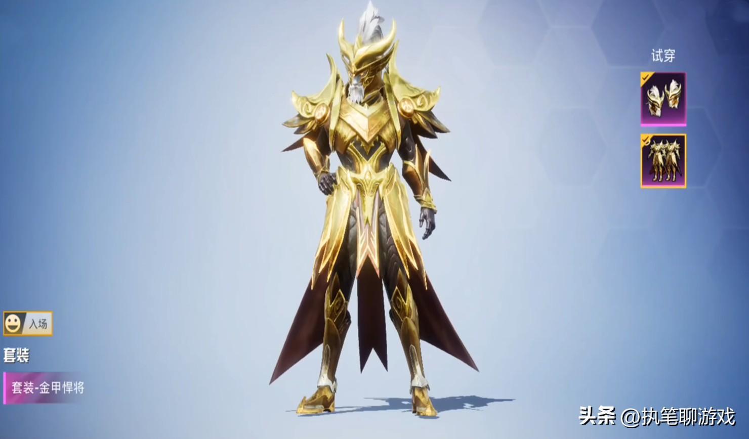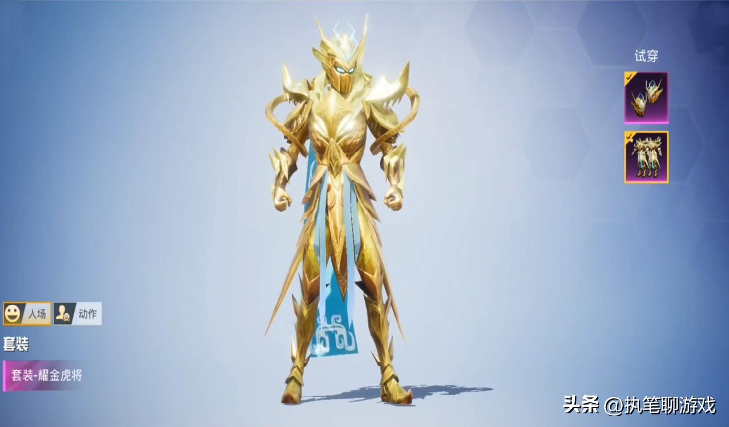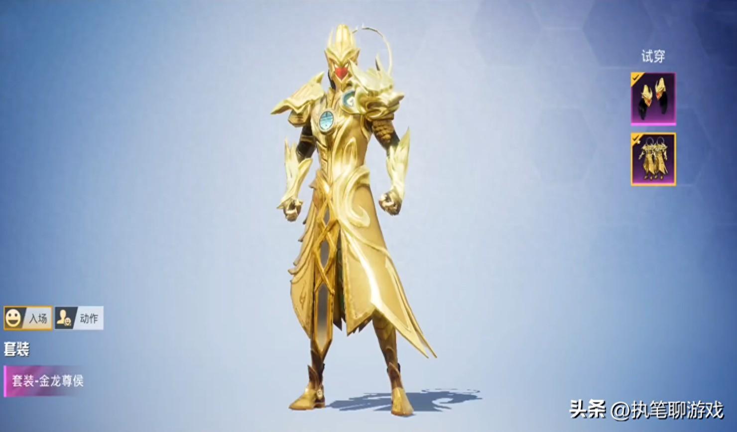 首先登場的是“金龍尊候”,看到這個版型設定,大家是不是覺得似曾相識呢?嘿,其實就是《和平精英》首個紅裝“青焰關公”的黃金版。
