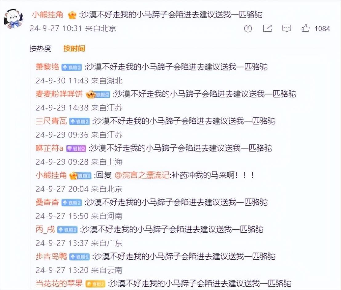 至於現在,玩家們都在微博官號下高呼“送匹駱駝”,不知道官方能否滿足新老玩家的這一願望?