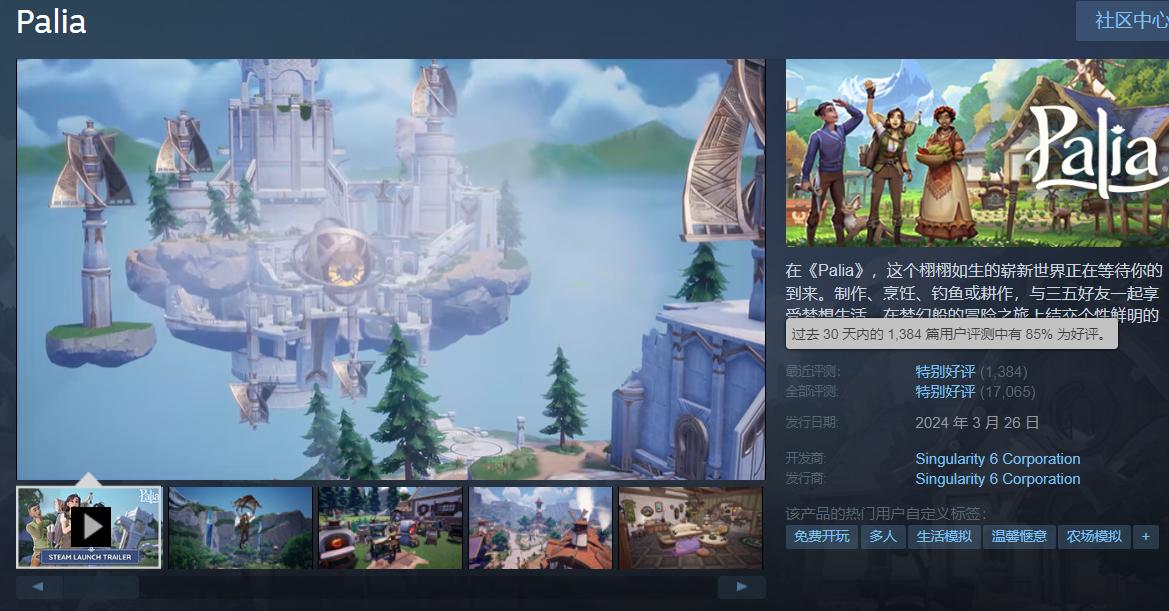 經過大半年的修修補補,加上游戲免費開玩無門檻的特質,《帕利亞》現在的好評率倒是達到了85%,也算是比較不錯了。