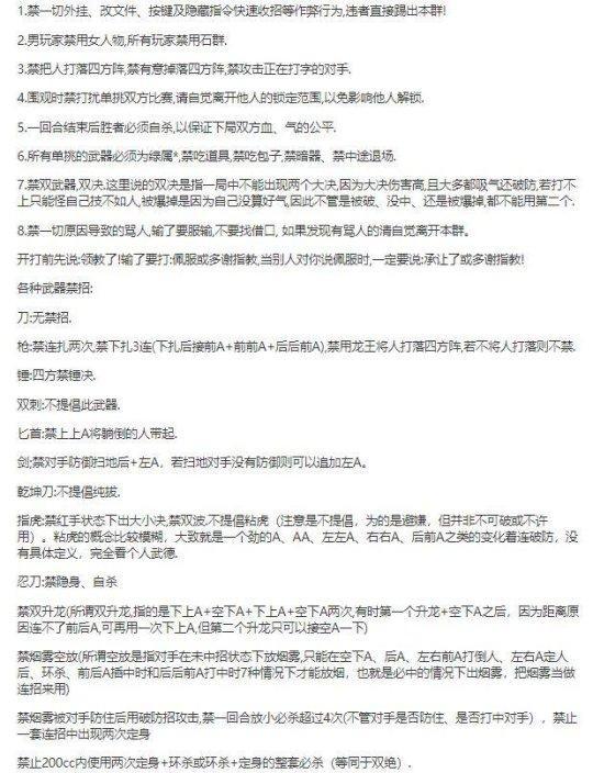 再後來接觸到浩方等第三方對戰平臺,瞭解到不同版本不同的規則,同時也遇到各種各樣的高手,這段時間小弟學會了更多技巧,知道怎麼去騙氣,消耗,還有一些禁招列表,不許用的暗器這些基礎的東西。