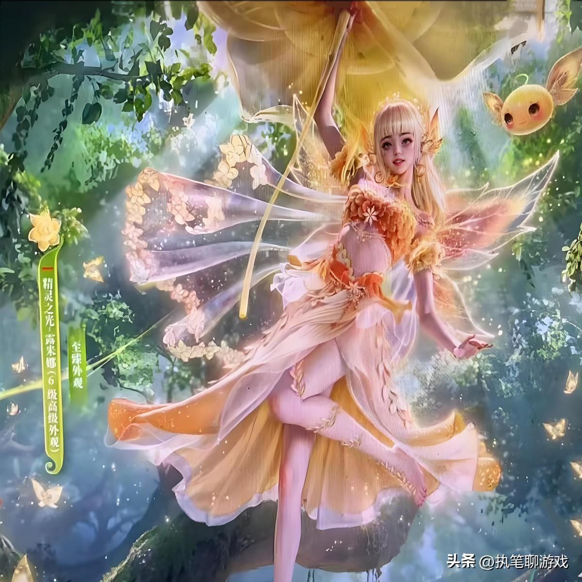 從這兩張原畫的表現來看,天哥覺得看起來有種似曾相識的感覺,1級基礎外觀像是花仙子,6級外觀特別不對勁兒,就像是N套舊衣服“組合”而成似的,翅膀、婚紗、金色長髮等細節,在很多套裝、角色身上都有出現過。