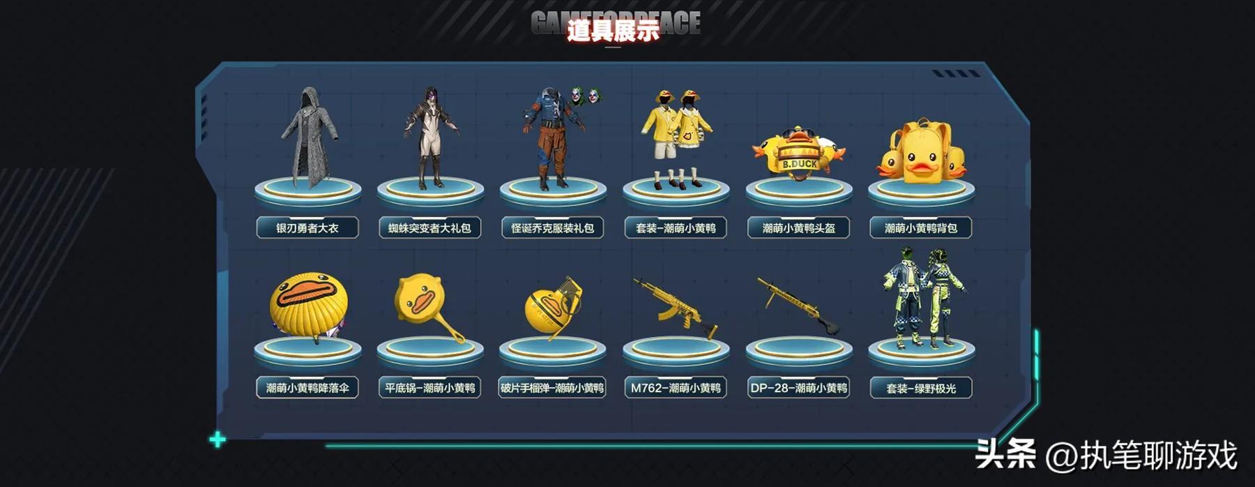 如圖所示,此次和平集市賽事專場裏出現了多個不同的經典套裝,其中有些還成爲了大禮包,比如怪誕喬克、蜘蛛突變、潮萌小黃鴨等,其中的“綠野極光”也是第一次返場,而“銀刃勇者大衣”更是首發的新衣服。