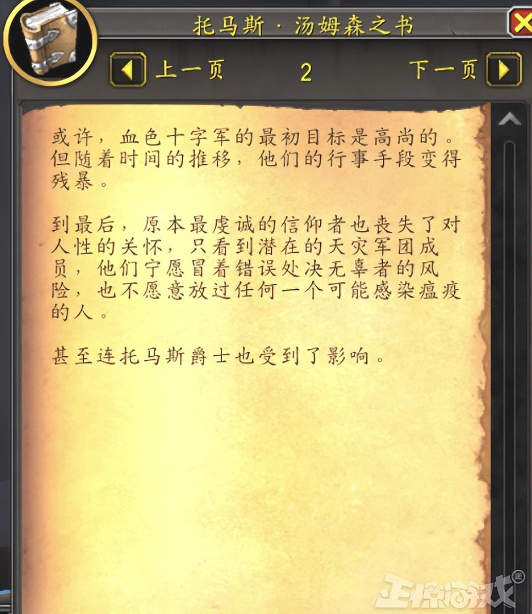 在內心的折磨下,托馬斯·湯姆森開始反思當年爲何不聽從阿爾薩斯的命令,把那些“瘟疫之源”統統消滅。