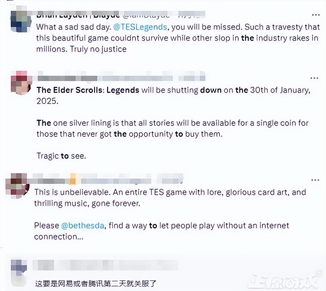 小弟嘠綠共:《上古卷軸:傳奇》宣佈停更後依舊堅持運營了5年,B社直達今年的底才宣佈停運也是仁至義盡了。