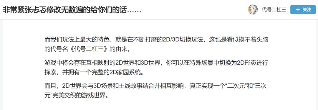 今天,一款名爲《代號二槓三》的二次元開放世界項目發佈了首曝視頻,激起了不大不小的水花。