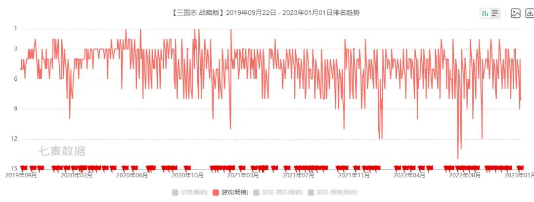 如果要說過去五年裏,國內市場最賺錢的遊戲有哪些,那累計賺了數百億,憑一己之力讓靈犀互娛站起來的三戰,勢必榜上有名。在上線的頭三年,三戰對SLG賽道算是統治級的產品,暢銷榜Top 5的常客,就沒跌出過幾次前十。