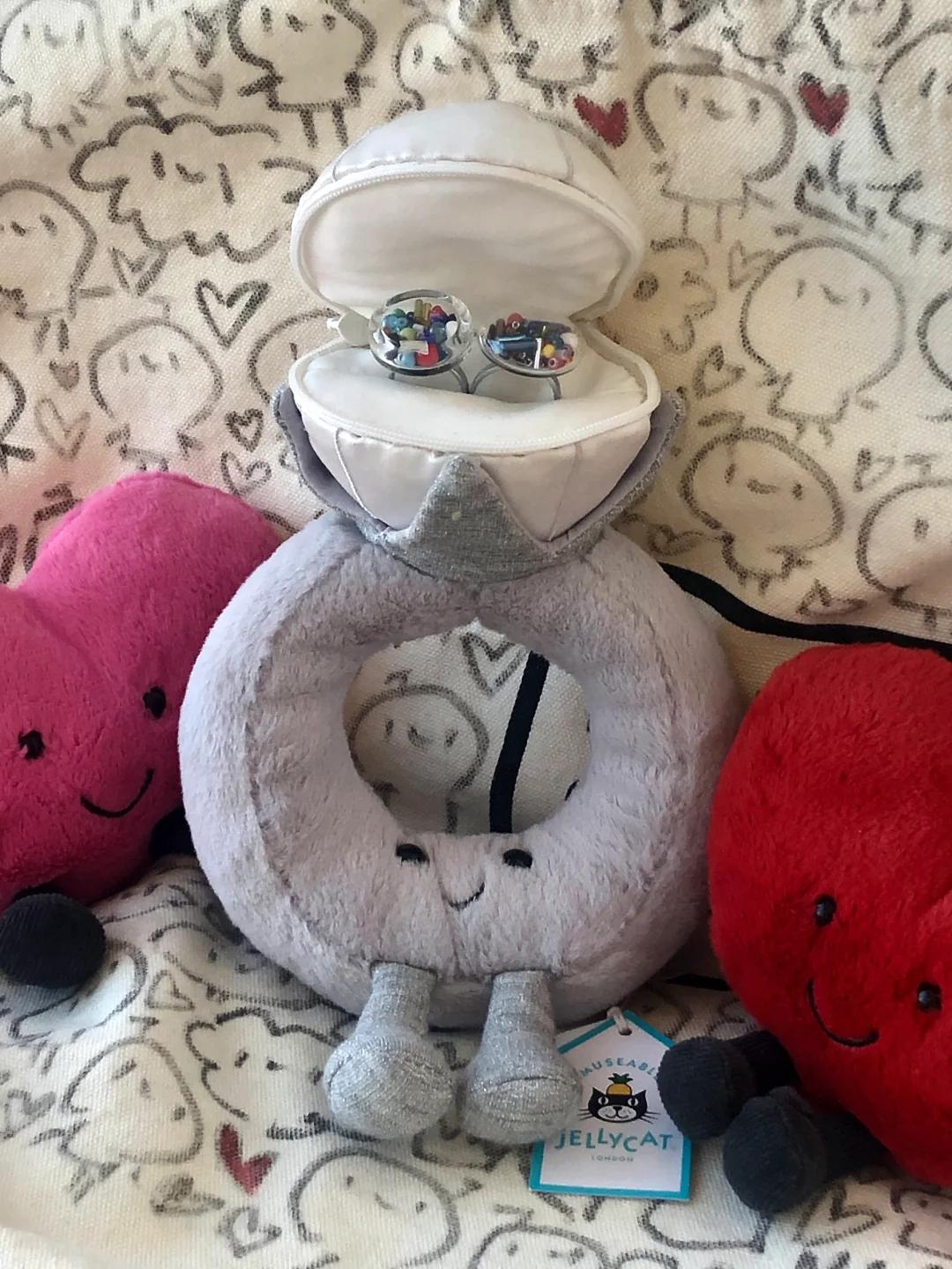 有些博主賣了Jellycat的戒指玩偶拿來改造成求婚戒指盒。