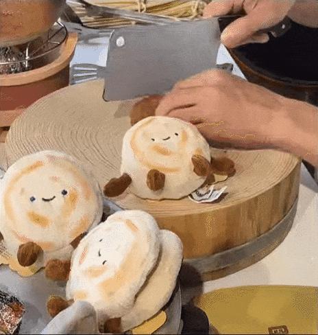 在洋抖上,你能看見許多Vlog記錄着一羣店員拿鍋鏟烤着漢堡玩偶,他們還會抓起漢堡玩偶的小手在臺面上“跳舞”。