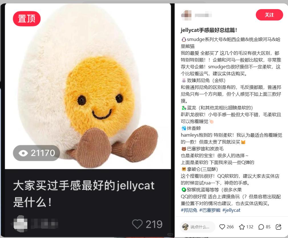 其他大多數的玩偶還是隻有Jellycat,或者毛絨玩偶的核心玩家纔會去關注和購買。