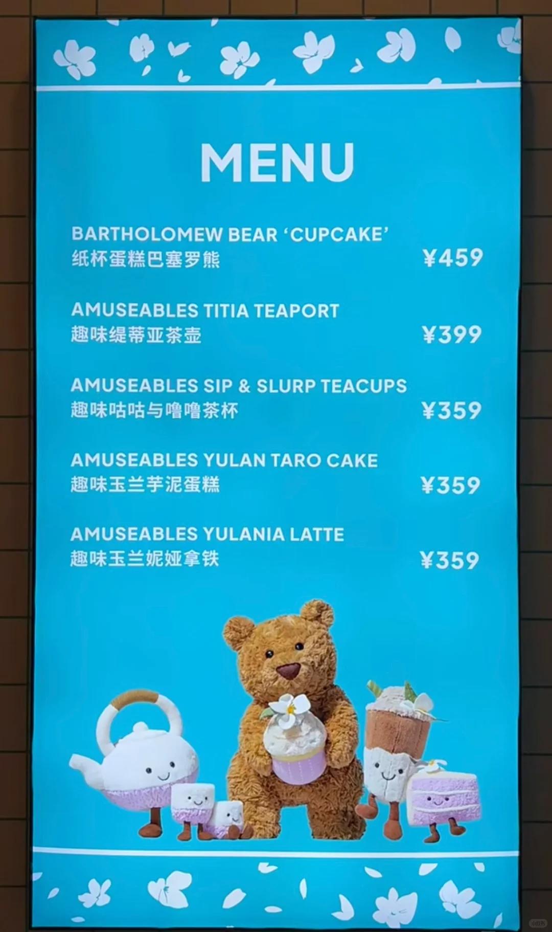 話說得沒錯,可是我的朋友,這杯用棉花和布料做的“拿鐵”,它其實是一個叫Jellycat的英國品牌設計出來的毛絨玩偶啊!至於所謂的“咖啡屋”,事實上也是Jellycat在上海開的一家快閃店。