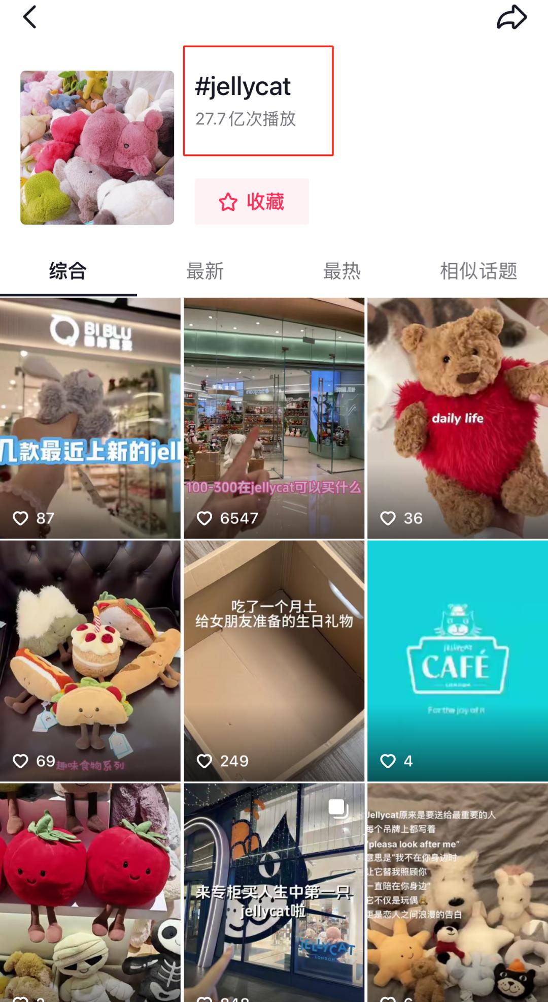 然而今年各個網絡平臺與Jellycat相關的話題,卻幾乎翻了好幾倍,光是抖音一個平臺就有27億的播放量。這些可愛的毛絨玩偶們,似乎還在“變本加厲”地統治着人類……