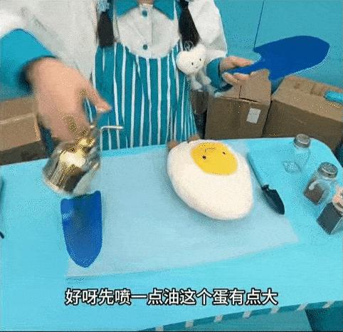 不同發佈者的視頻裏,店員們幾乎都重複着同一套表演,拿着鏟子給盆栽玩偶“鬆土”、在臺面上“煎”雞蛋玩偶……最後裝進包裝袋裏遞給顧客。