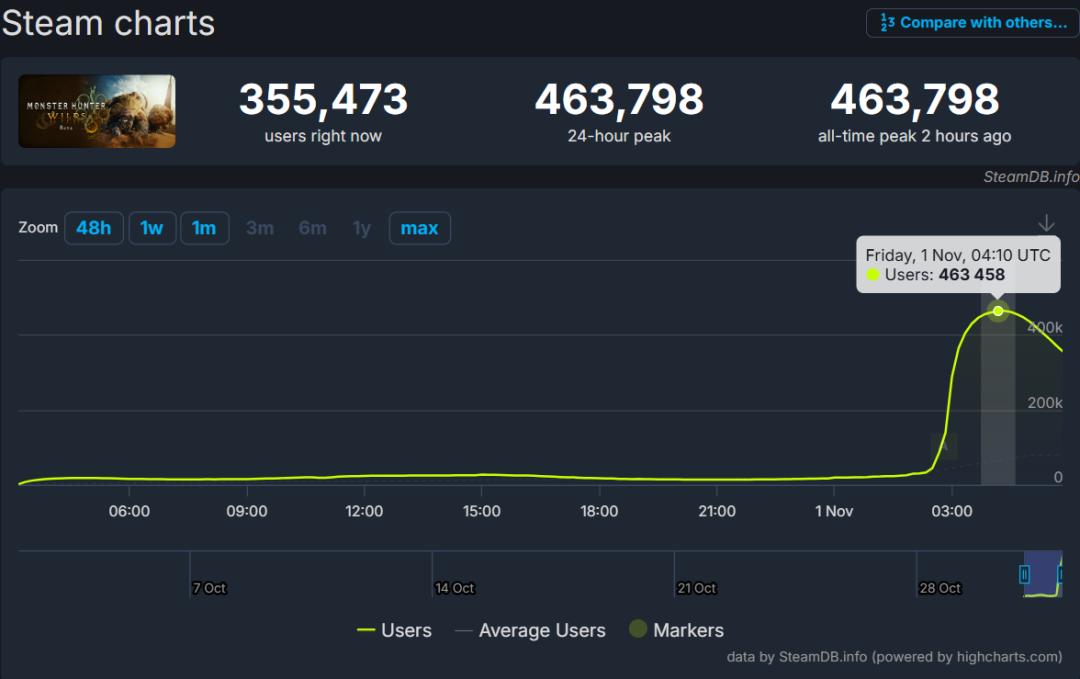 經過幾天PS會員的搶先體驗,《怪物獵人:荒野》在今天也正式開啓Steam測試。公測上線不到一小時,在線人數直飆40萬。