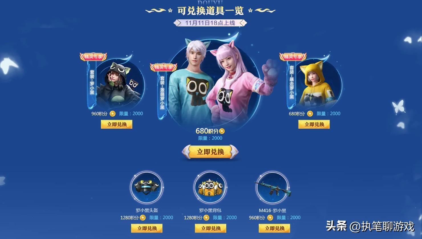 然後是羅小黑系列,雖然之前多次返場,但卻憑藉潮流元素得到了不少玩家的認可,此次在精英手冊中以“單件兌換”的方式出場,有趣的是,黑色套裝是960積分,剩餘的2個套裝則是680積分。