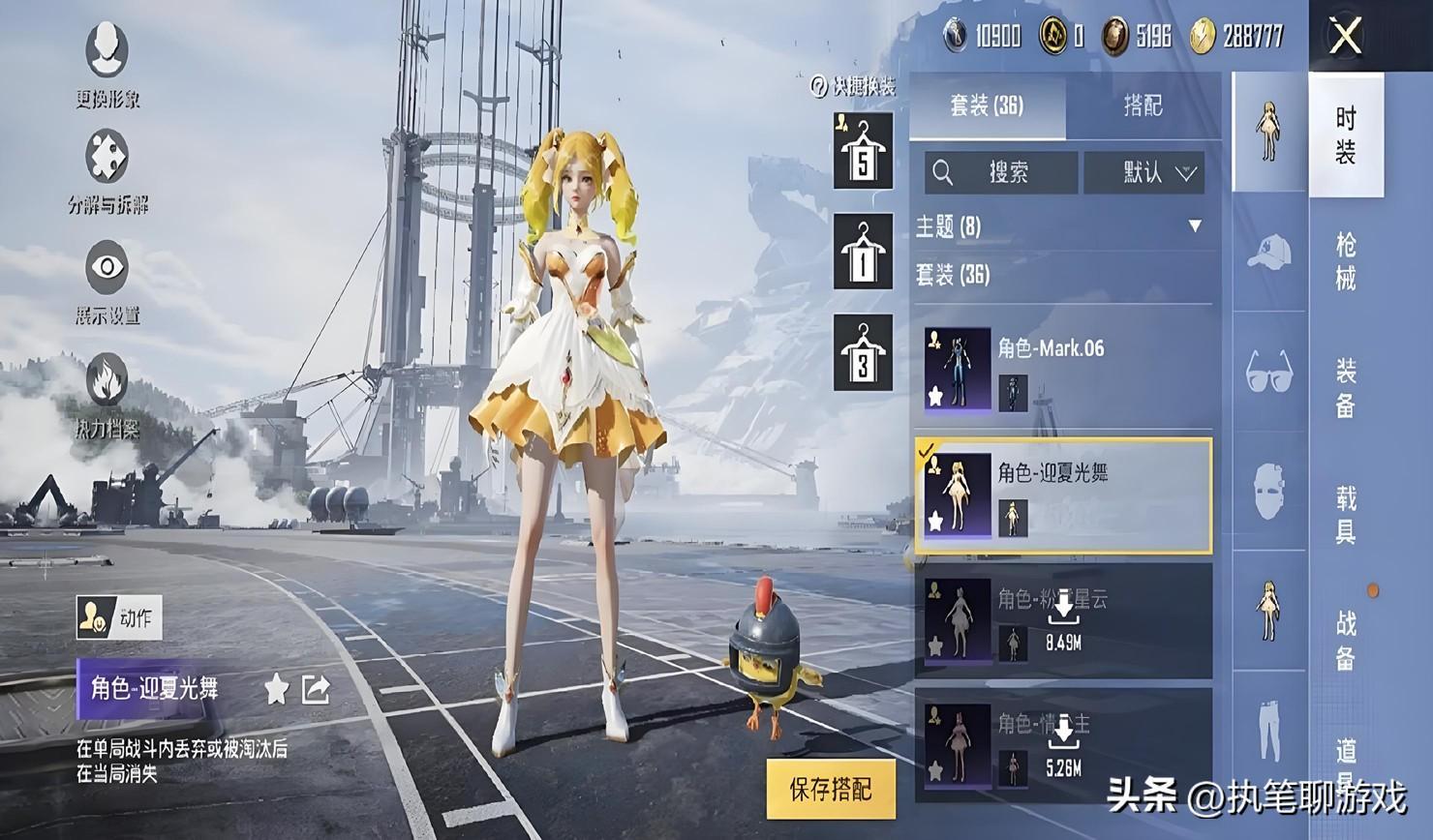 我們以1級外觀爲例,金黃色的雙馬尾尤其亮眼,淺黃色的連衣裙則有一種好像在哪裏見過的感覺,整體搭配下來確實有些像是“舊衣翻新”。當然,這是拋開變色功能不談的前提,畢竟這種自動變色的功能設定,還是《和平精英》裏第一例。
