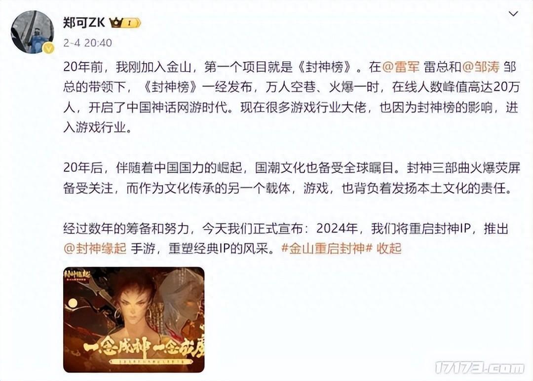 今年2月,金山世遊CEO鄭可宣佈即將重啓封神IP。而這款由此立項的遊戲,便是《封神再臨》。最近在10月31日《封神再臨》開啓了刪檔計費測試 “坤靈之測”。此次測試將同時在安卓、iOS 移動端以及 PC 端開放。