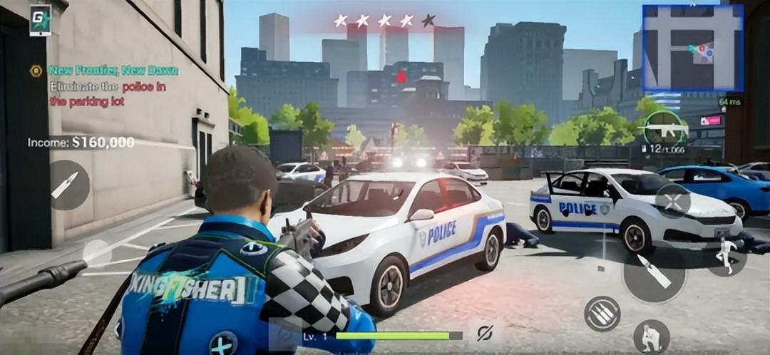 這是一款類GTA的手遊,玩法和GTAOL非常相似,遊戲裏擁有大量GTA元素,例如改裝車、飆車、搶銀行等諸多玩法應有盡有,甚至連逃離追捕時的五星通緝系統也完全一致。