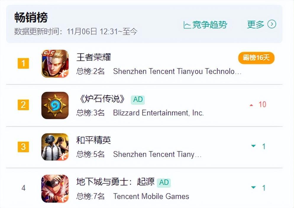 如今在IOS銷量榜中,《爐石傳說》僅次於《王者榮耀》位居第二,已經狠狠拿下了騰訊手遊三巨頭中的喫雞和DNF了,不知道11月7日上線的《寶可夢大集結》能否有一戰之力。