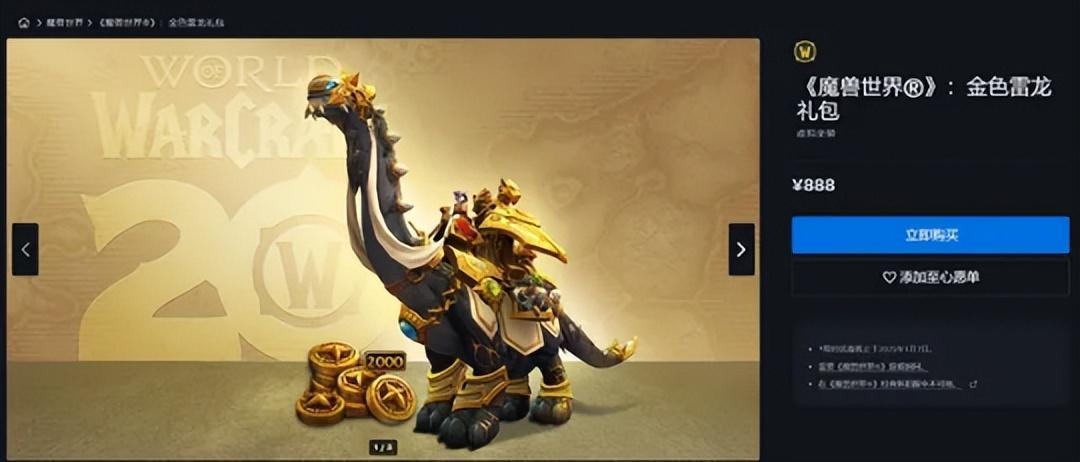 值得注意的是,在這次20週年更新中,暴雪商城同步上架了一款售價888(外服90美元)的禮包,其中包含了一個鎏金雷龍的坐騎。