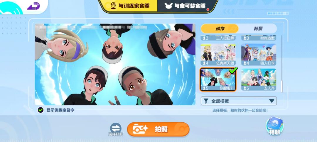 個人資料頁、排行榜、活動頁、戰鬥結算......遊戲很多環節都有訓練師展示,就連拍照模式,也是將訓練師與寶可夢合照分開,並準備了1~5人的多套拍照模版。