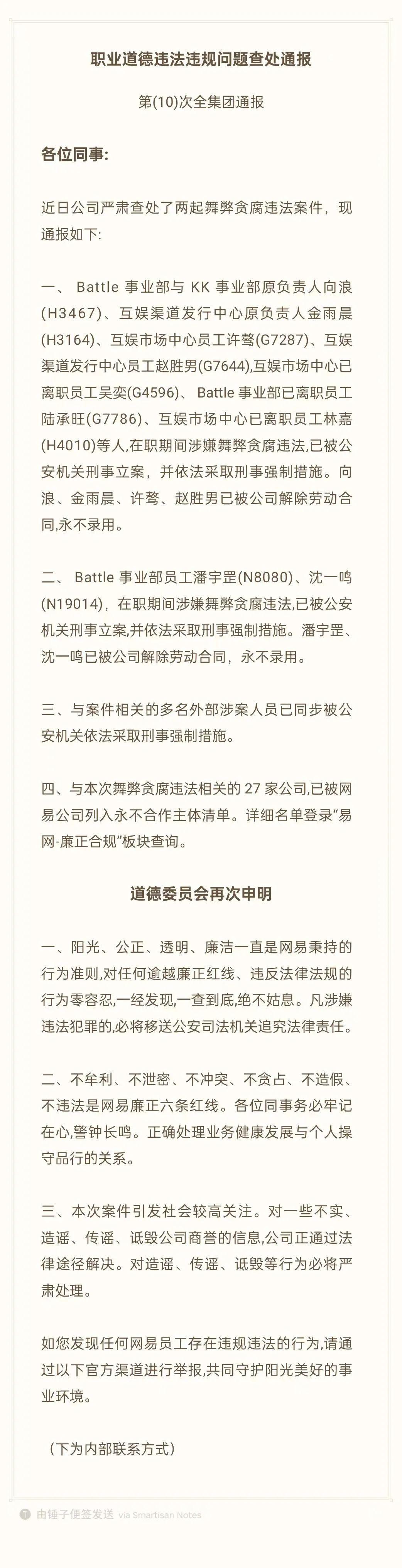 獨家丨網易發佈反腐通告,涉案人員曝光,一事業部成重災區