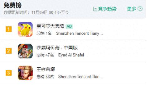 11月7日,騰訊和任天堂合作的寶可夢IP手遊《寶可夢大集結》正式上線,遊戲上線後憑藉強大的平臺宣發和世界第一IP寶可夢的加持,穩穩拿下下載榜榜一的席位。