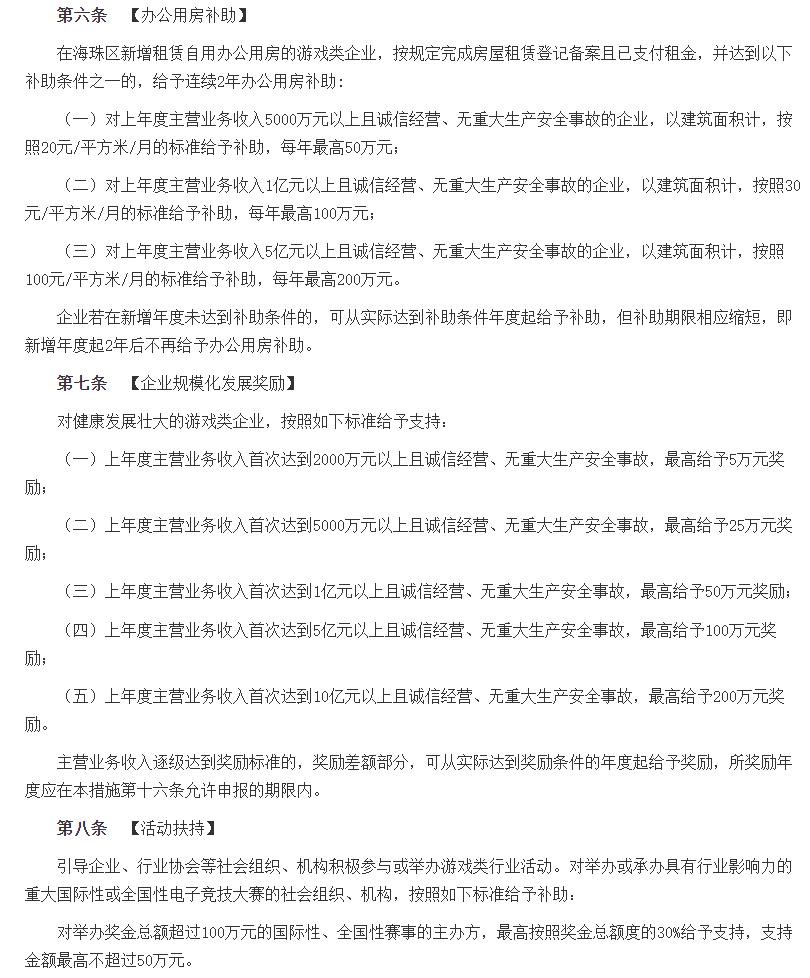 此次廣州市海珠區的“遊戲產業16條”圍繞原創遊戲開發、遊戲平臺運營、動漫製作發行、電競賽事運營等方面給予資金獎勵,獎勵最高可達200萬元。