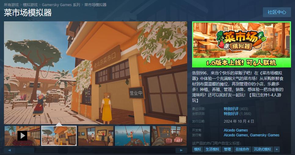在遊戲裏,你可以獨自一人或是和小夥伴一起,在充滿煙火氣的菜市場裏上經營一家屬於你的小店。