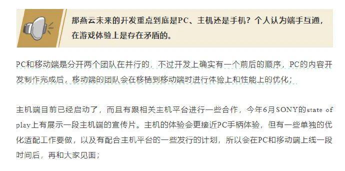目前PC和移動端由兩個團隊並行開發,主機端將稍晚於PC和移動端推出。