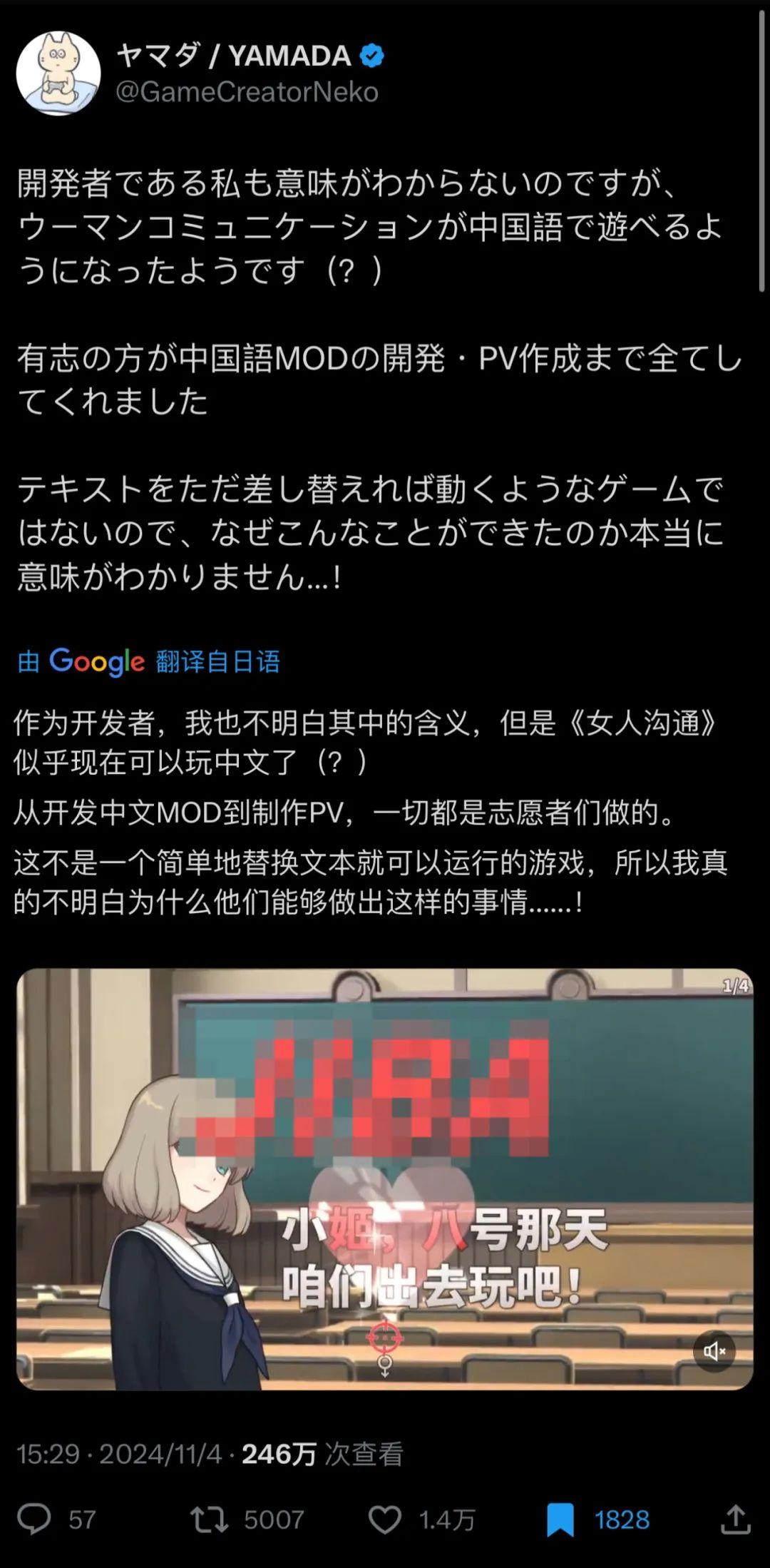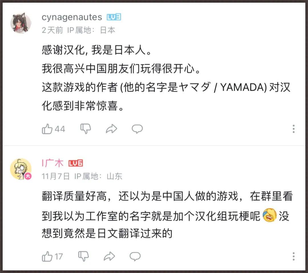 作者YAMADA原本也以爲這會是一個只能用日語玩的遊戲,聽聞中國玩家做了民間漢化MOD,他感到非常震驚。