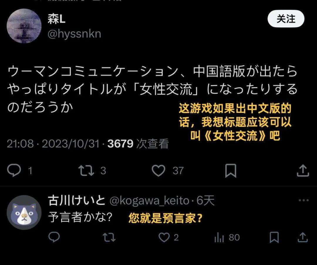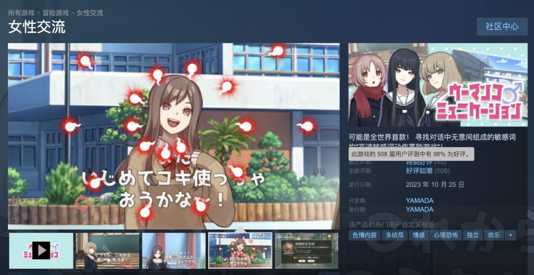 正好有一款以“敏感詞審覈”爲題材的日本小衆佳作,叫《女性♂交流》,最近更新了中文漢化,Steam上好評率高達98%,每個玩過的人都說好。