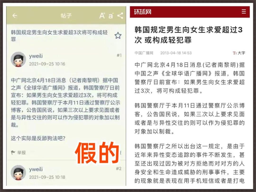 最早出自2013年韓國實施《輕微犯罪處罰法》對跟蹤行爲的處罰,後來2021年進一步加大了相關法律的解釋範圍,被國內野雞新聞網站挖墳誤傳。