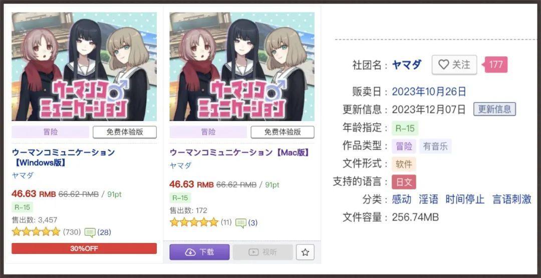 《女性♂交流》本身是一個小體量的獨立遊戲,Steam上售價¥70左右,DLsite售價¥40左右(配合折扣券)。