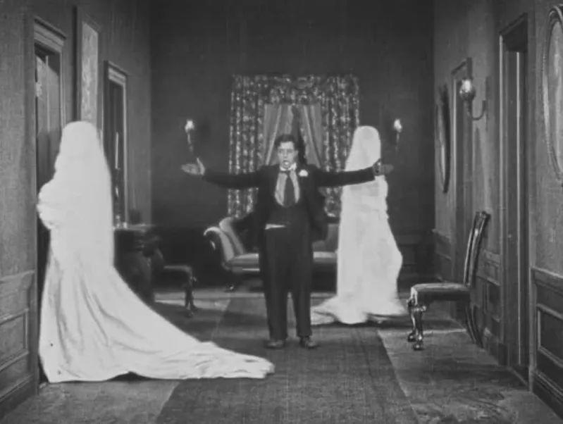 當時很多電影都有這種內容,例如和卓別林齊名的喜劇巨匠巴斯特·基頓的《鬼屋》。
