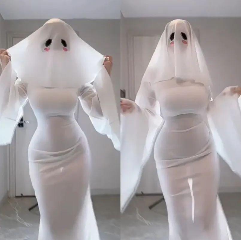 幽靈娘,其實早就是個萬聖節擦邊利器了,基本上每年都可以看到有人這麼做,只是很少這般出圈。這基本上算個萬聖節的保留節目,就像每年聖誕節,都會有人穿成聖誕老人的萌妹小助手,拍一些拆 禮 物小視頻。