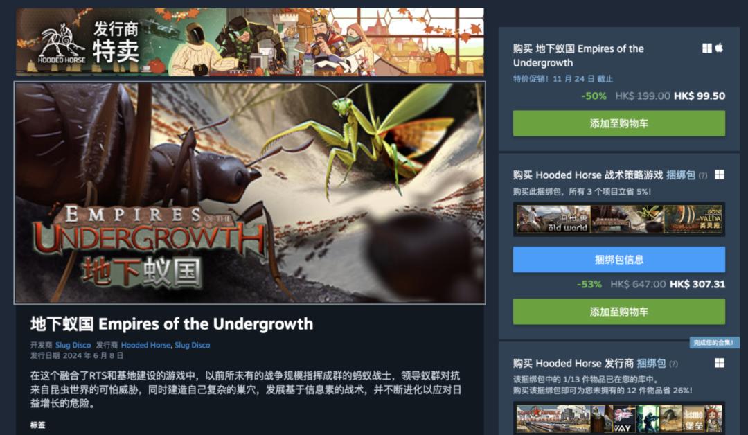 今天推薦一款最近在打折的RTS遊戲,叫《地下蟻國 Empires of the Undergrowth》。