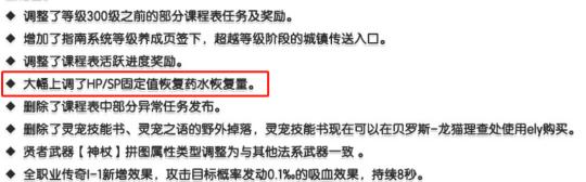 在數值改動部分,則出現一條讓X博士都有點“肅然起敬”的內容——大幅上調HP/SP固定值恢復藥水恢復量。