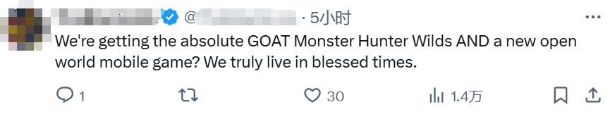 “我們馬上會有超超超好玩的《怪物獵人:荒野》,然後現在你說還有一個怪獵IP的在研開放世界手遊?能在這個時代生活,我們真是太幸福了。”